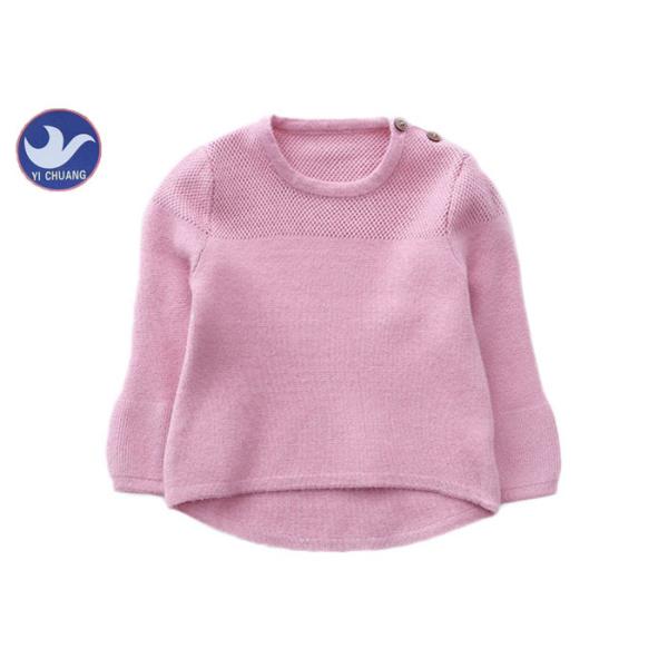Shoulder Buttons Closure Girls Pullover Sweaters High - Low Trumpet Sleeves Images |