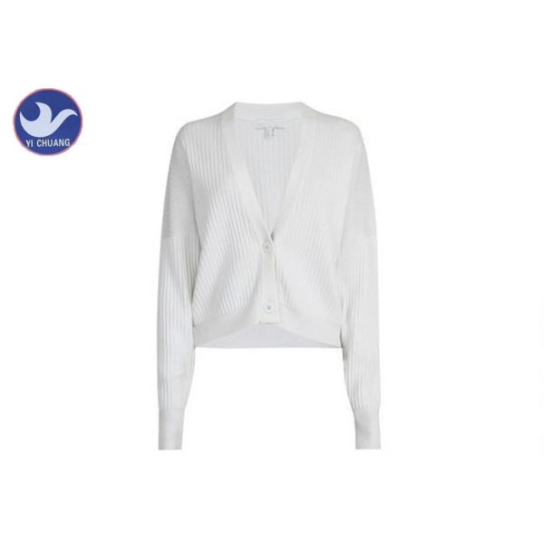 Ribbed Buttons Up Womens Knit Cardigan Sweater Bat Drop Sleeves Anti - Shrink Images |